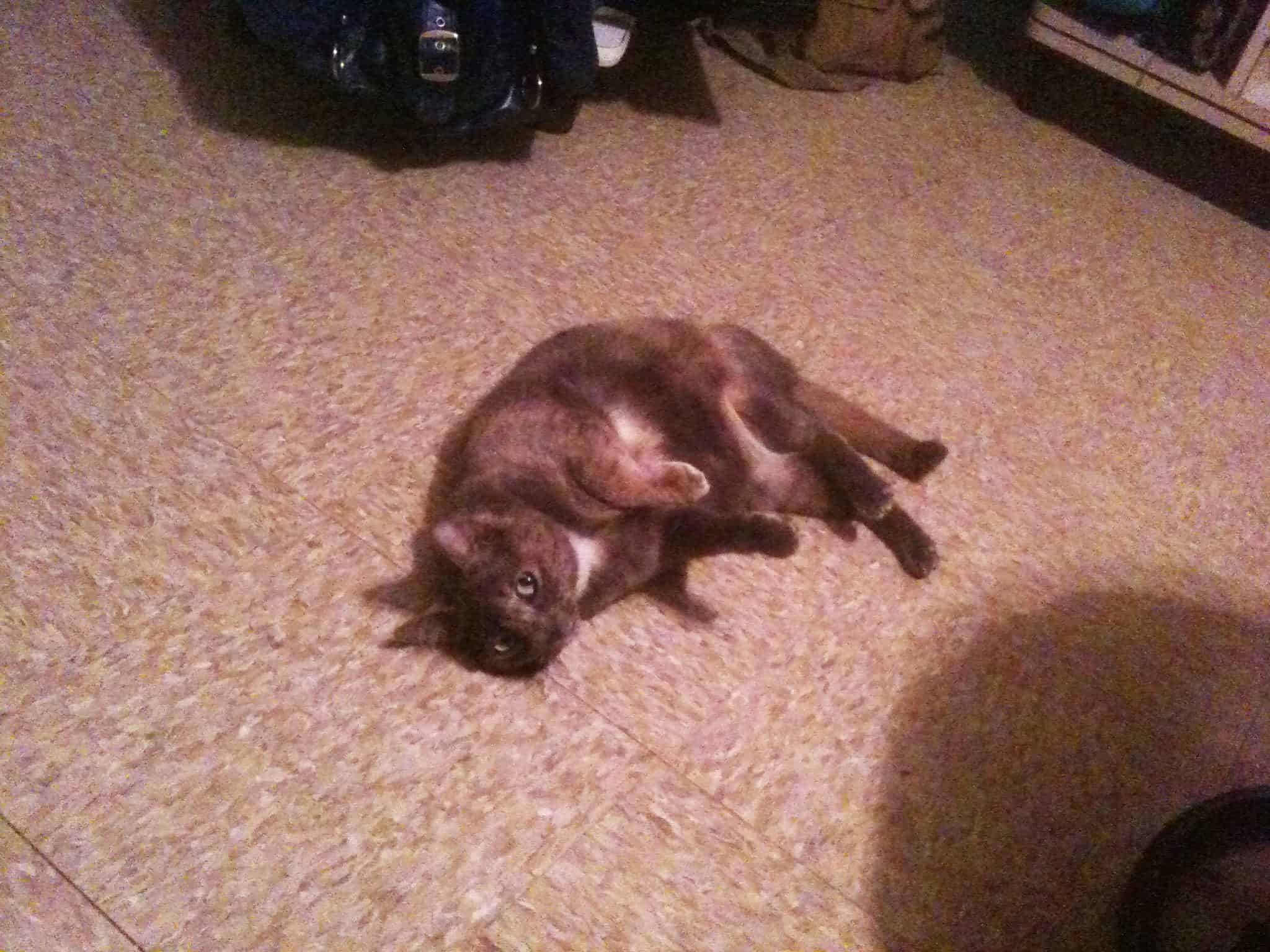 Things went pretty well considering, I created a bed area under a round table and draped cloth over the front so it was nice and dark for her so she’d feel safe and whenever I fed her or cleaned out her water bowl I’d talk in a low voice so she’d get more used to my presence. With time she began to warm up to me and eventually she allowed me to pet her… Luna LOVED butt scratches and this was the key to our friendship, it got to the point where I’d go in her room and say “Lu Lu” and she’d run out to say hello and then present me with her butt 🙂