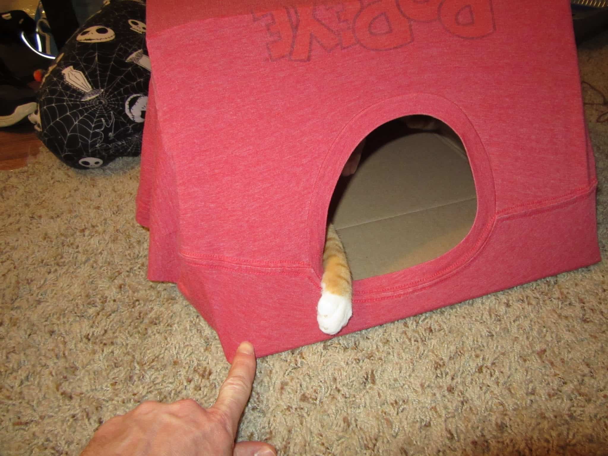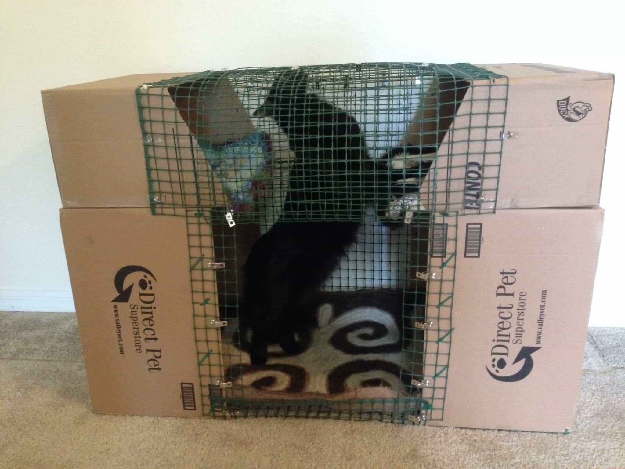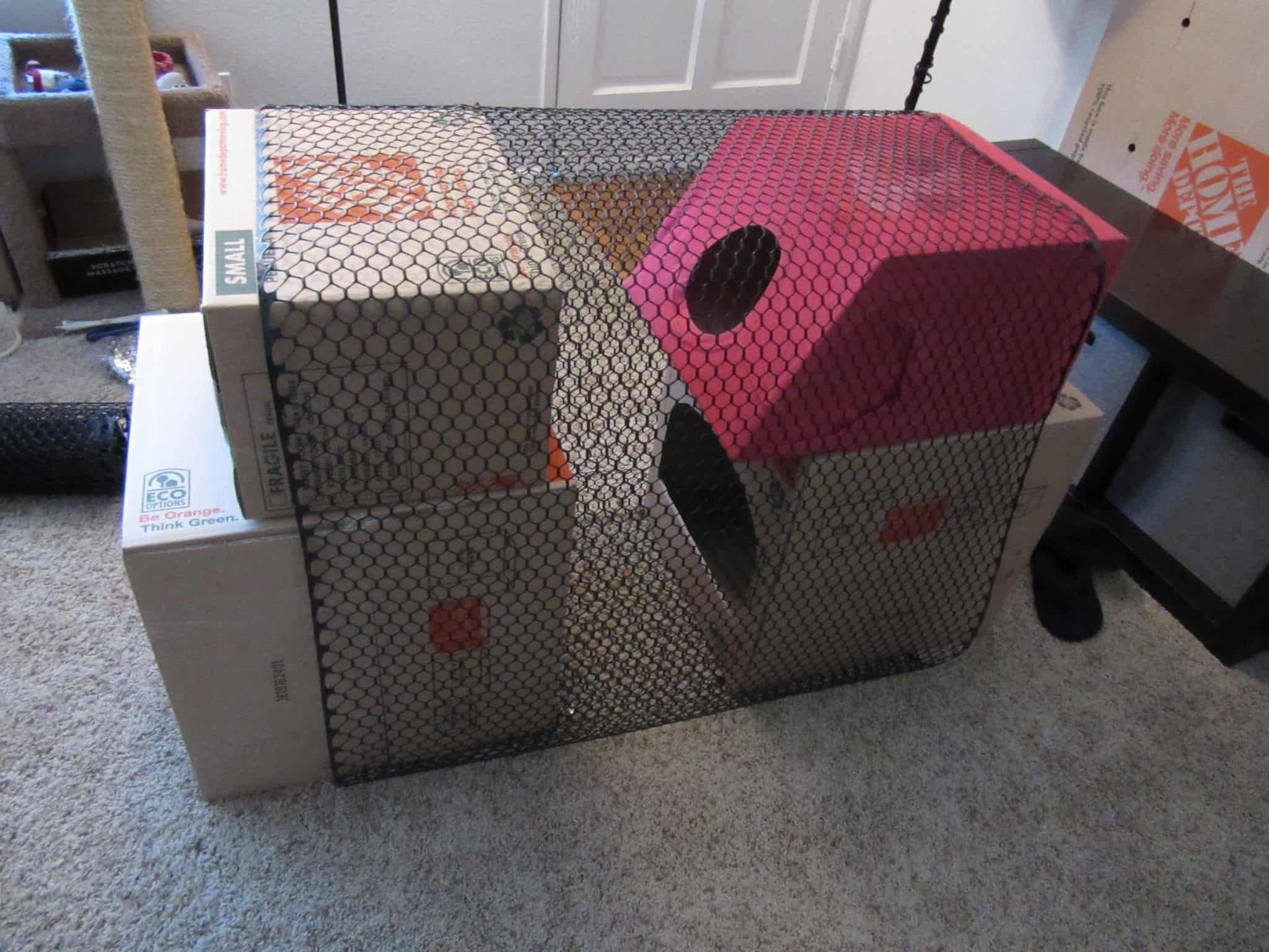 Once we had the carrier made up and ready to go, we kept it in the apartment. This way, Cole and Marm could get their scent all over it and get used to it. Sure enough they were investigating it immediately and it became one of their favorite sleeping spots.