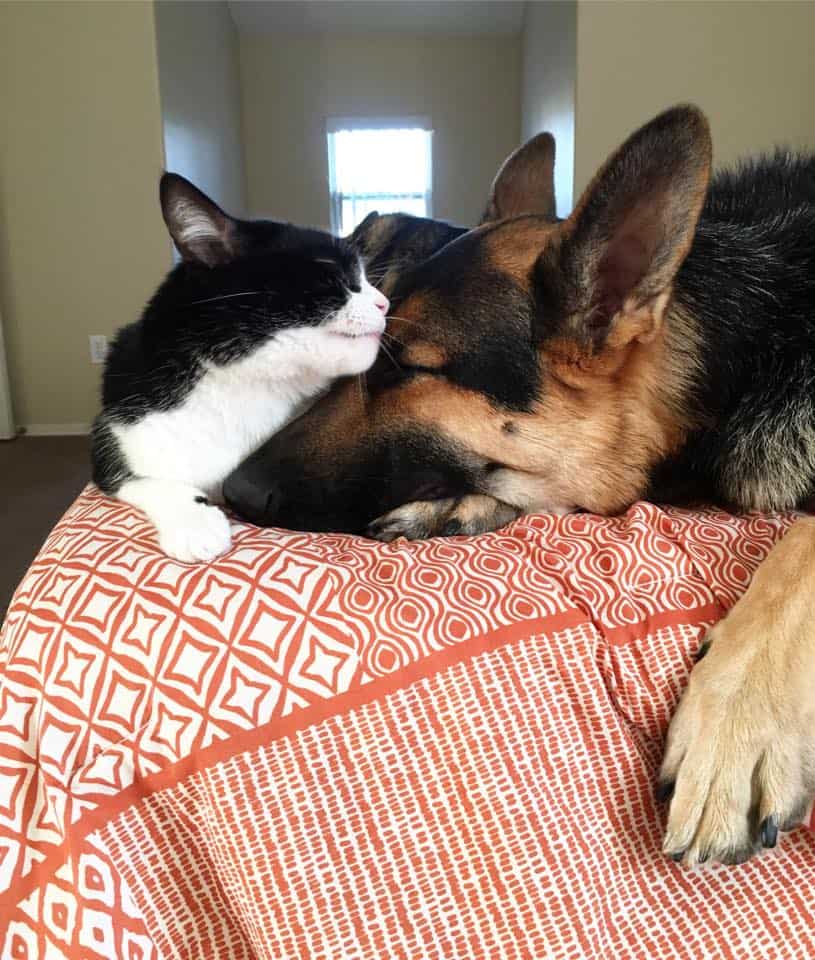 They named the German Shepherd Libby and the black cat, Gizmo. They estimate that Libby is almost 6-years old and Gizmo is around 10 months.