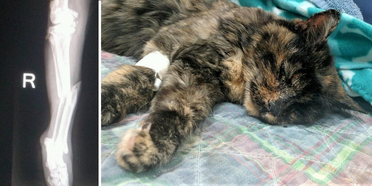 Once they got the kitten back to the vet, they were devastated to learn that both front legs were broken.