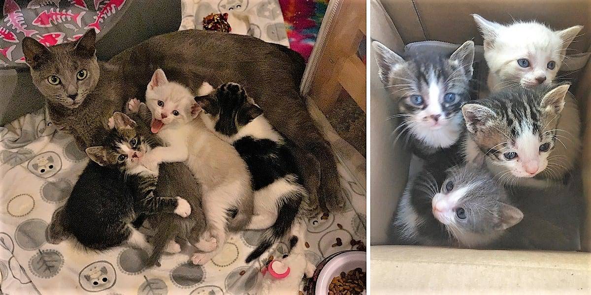 The swimmer syndrome kittens were born to a 3-time mama living within a feral/stray colony.
